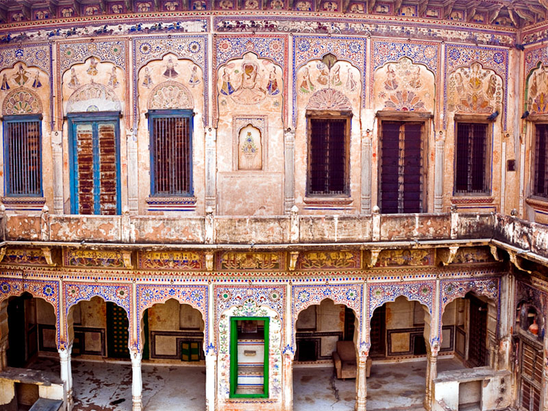 Shekhawati is popularly known as an open air art gallery and Surajagrh is at the heart of it and boasts of many havelis. Walking and camel cart tours are organized to the havelis. The Marwari traders accumulated enormous wealth in their trade of rice, opium, cotton, spices and textiles. The wealth was usually reinvested or sent back home for their families. The affluent marwari families tried to outdo the other in the size and quality of their mansions, giving birth to fine and colourful architecture in the desert region where it was least expected.